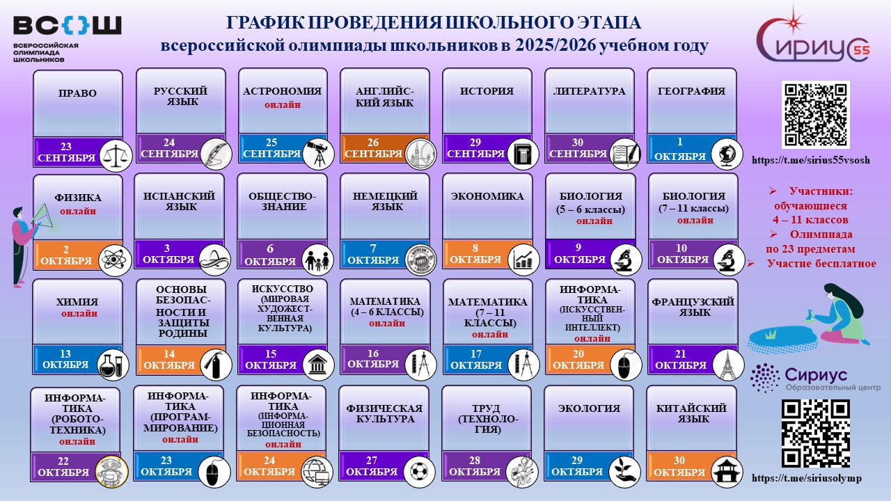 Всероссийская олимпиада школьников (ВСОШ, Всерос) – это главная в России олимпиада для школьников 4–11 классов, которая проходит по 24 общеобразовательным предметам. ВСОШ охватывает более 7 миллионов участников каждый год. Организует и курирует проведение олимпиады Минпросвещения России.